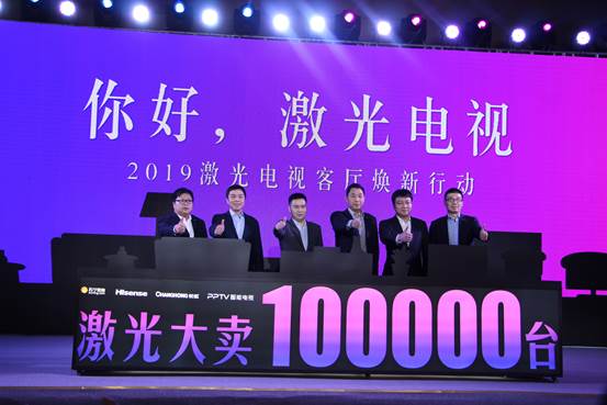 2月21日,海信激光電視攜手蘇寧、長虹、PPTV在南京啟動“2019激光電視客廳煥新行動”,會上共同制定了激光電視全年的銷售目標:10萬臺!這不僅表明了激光電視四大行業巨頭的信心也大大的推動了激光電視行業的快速普及和發展。
