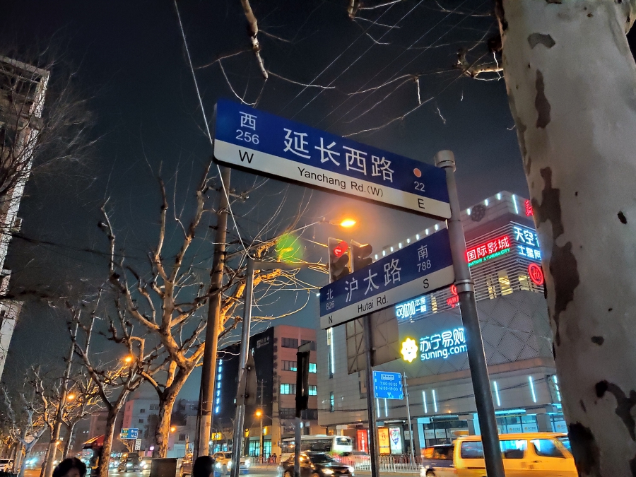 夜間樣張,魅族Note 9支持超級夜景模式,我們在同一場景下使用魅族Note 9拍攝兩張照片,可以發現魅族Note 9在普通模式下的樣張色彩還原更加真實,但是噪點較多,暗部細節也有所缺失;開始超級夜景功能后,魅族Note 9拍攝的樣張暗部細節得到了更多的保留,噪點以及高光也都控制的非常不錯,但是整體色調偏濃。