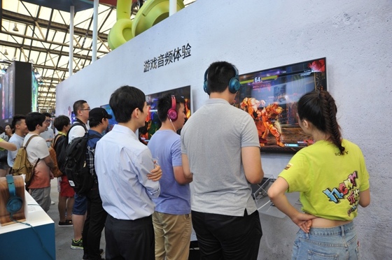 游戲音頻體驗區引來了無數玩家一邊感受高品質游戲音效,一邊大展身手。