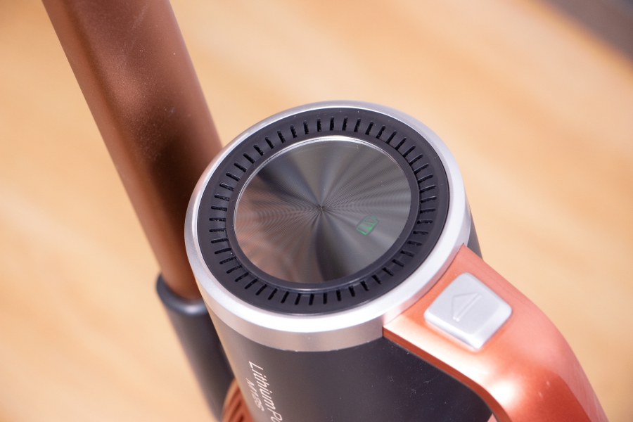 手持主機采用了無線的設(shè)計,清潔的時候不需要拖著電線在屋內(nèi)行走,減少了不安全的漏電風險或者電線纏繞變成阻礙的風險,同時也讓機身變得更加的簡潔美觀。電機頂部帶有使用狀態(tài)提示燈,一眼看出剩余電量。