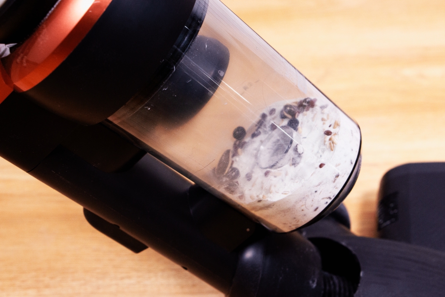 主機上的二級塵杯清潔也非常簡單,一鍵按下灰塵自動掉落,完全不臟手。塵杯依然可以水洗,避免細菌滋生。
