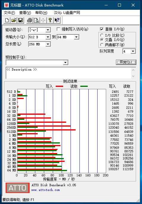 在ATTO Disk Benchmark的測試中,希捷“錦”的最高讀取速度為112.16MB/s,最高寫入速度為131.58MB/s。