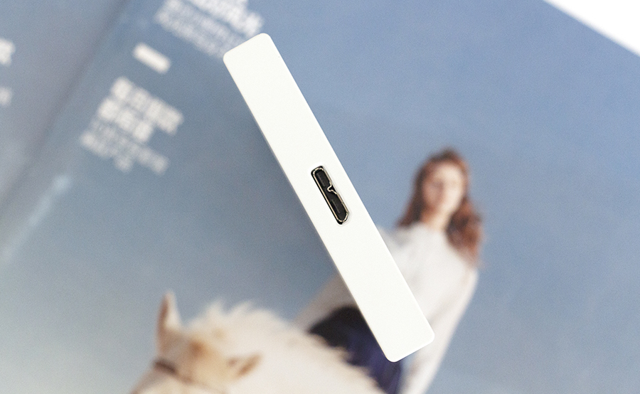 希捷“錦”系列的背部設(shè)計(jì)則相對(duì)簡潔許多,除底部產(chǎn)品信息標(biāo)簽,無其他設(shè)計(jì)語言。不過值得一提的是,其機(jī)身采用的ABS塑料做了磨砂處理,在提升手感的同時(shí)也解決沾染指紋的問題。