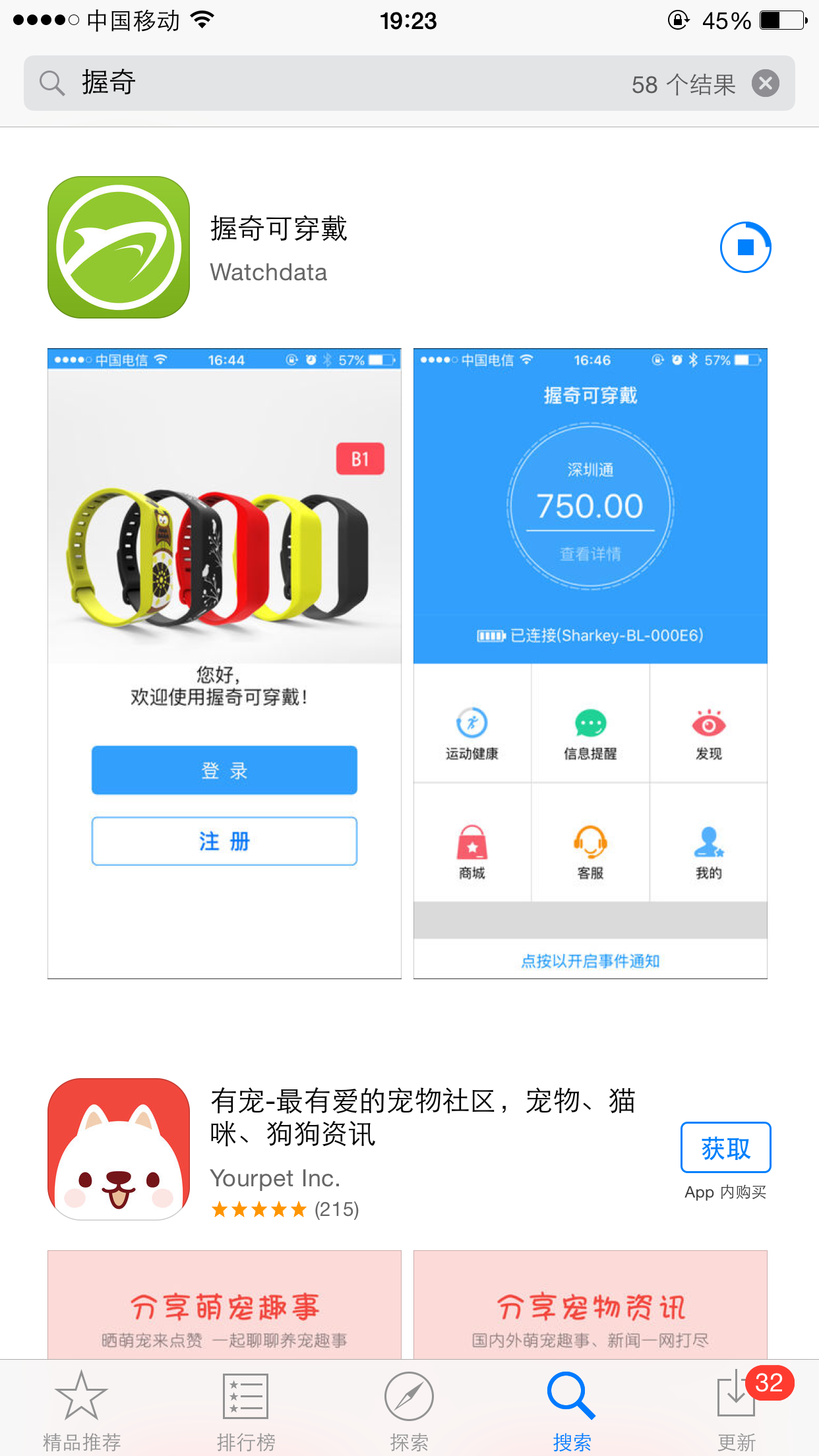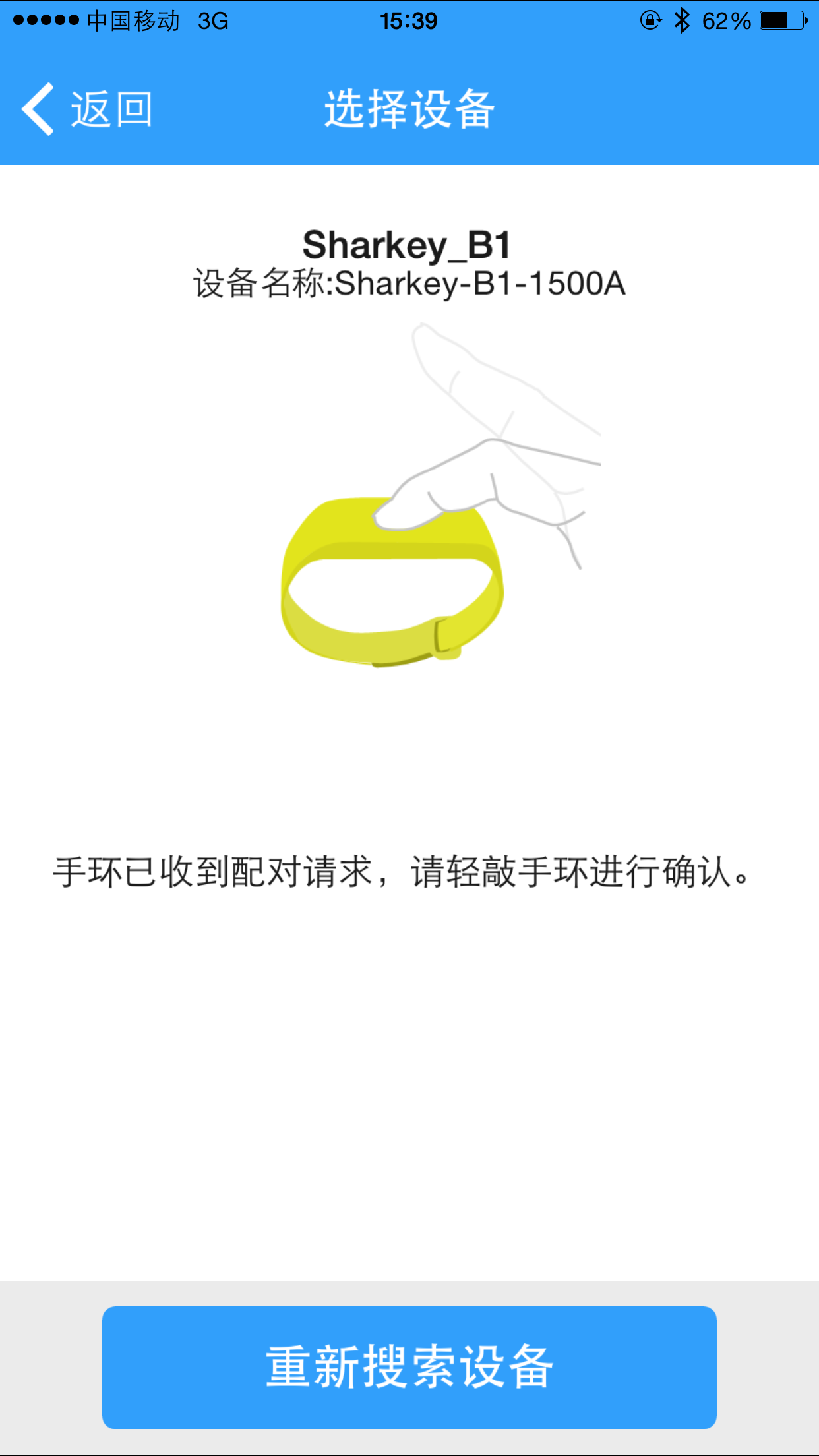 在使用這款手環(huán)之前,記得下載握奇可穿戴APP,并且根據(jù)提示操作綁定手環(huán),當(dāng)出現(xiàn)下圖最后一張界面時(shí)就代表綁定成功了,接著就可以開始我們的魔都之旅了。