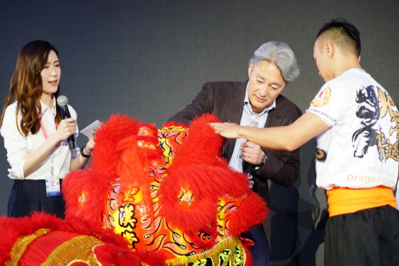 活動現(xiàn)場平井一夫先生給舞獅點睛