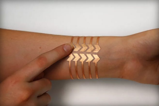 一群來自麻省理工學院媒體實驗室的博士生和微軟研究院的研究員提出了一個終極穿戴式設備的想法:一個可以變成觸摸板的臨時紋身,這個紋身可以遠程控制智能手機,或使用NFC共享數據。這項被稱為DuoSkin的技術已在麻省理工的學院網站上有所描述,并會在下月一個全身穿戴式設備的研討會中提出。研究人員表示,你可以使用任何圖形軟件設計電路,隔絕金箔紋身(這是傳導電力的),然后再使用其他材料使紋身實現互動。