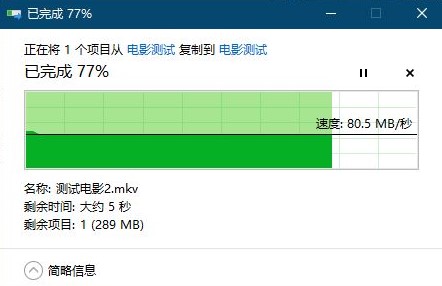 在實(shí)際傳輸文件時(shí),銘系列也基本達(dá)到了同樣的傳輸速度,平均值在80MB/s左右,一部1.5GB左右的高清視頻,10秒鐘左右即可傳輸完成。