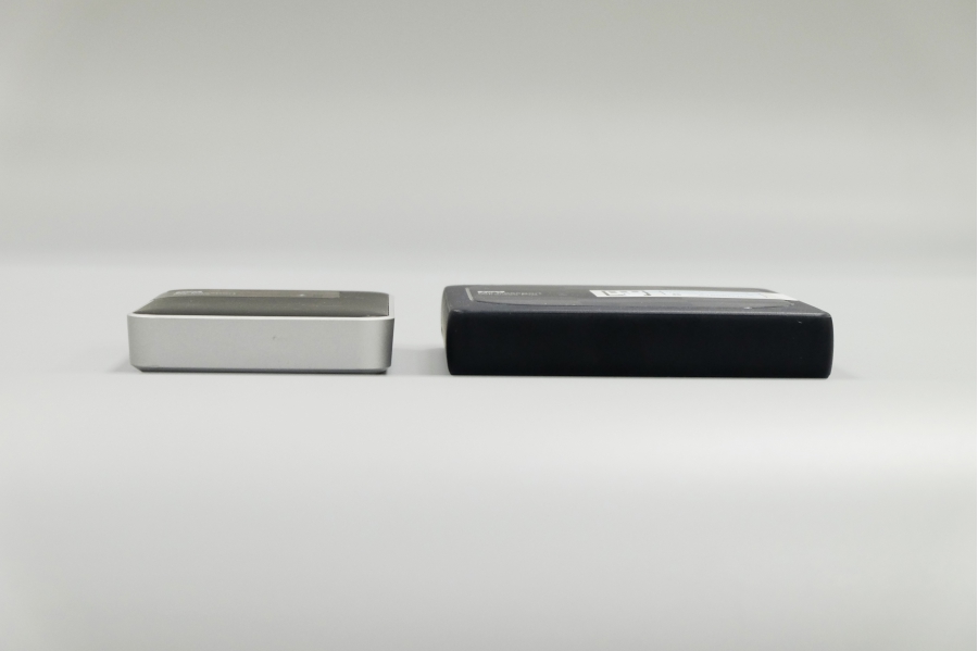 My Passport Wireless Pro于上一代產(chǎn)品對比(My Passport Wireless Pro 2TB,3TB大小相同,圖中My Passport Wireless為1TB,2TB更厚一些)