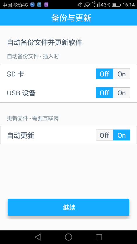 連上WIFI后,我們就可以對My Passport Wireless Pro進行操作了(未下載Google Play的用戶,會有提示界面,不過不影響正常使用),在第一次使用時需要進行一些設(shè)置,可以根據(jù)自己的需要進行選擇。