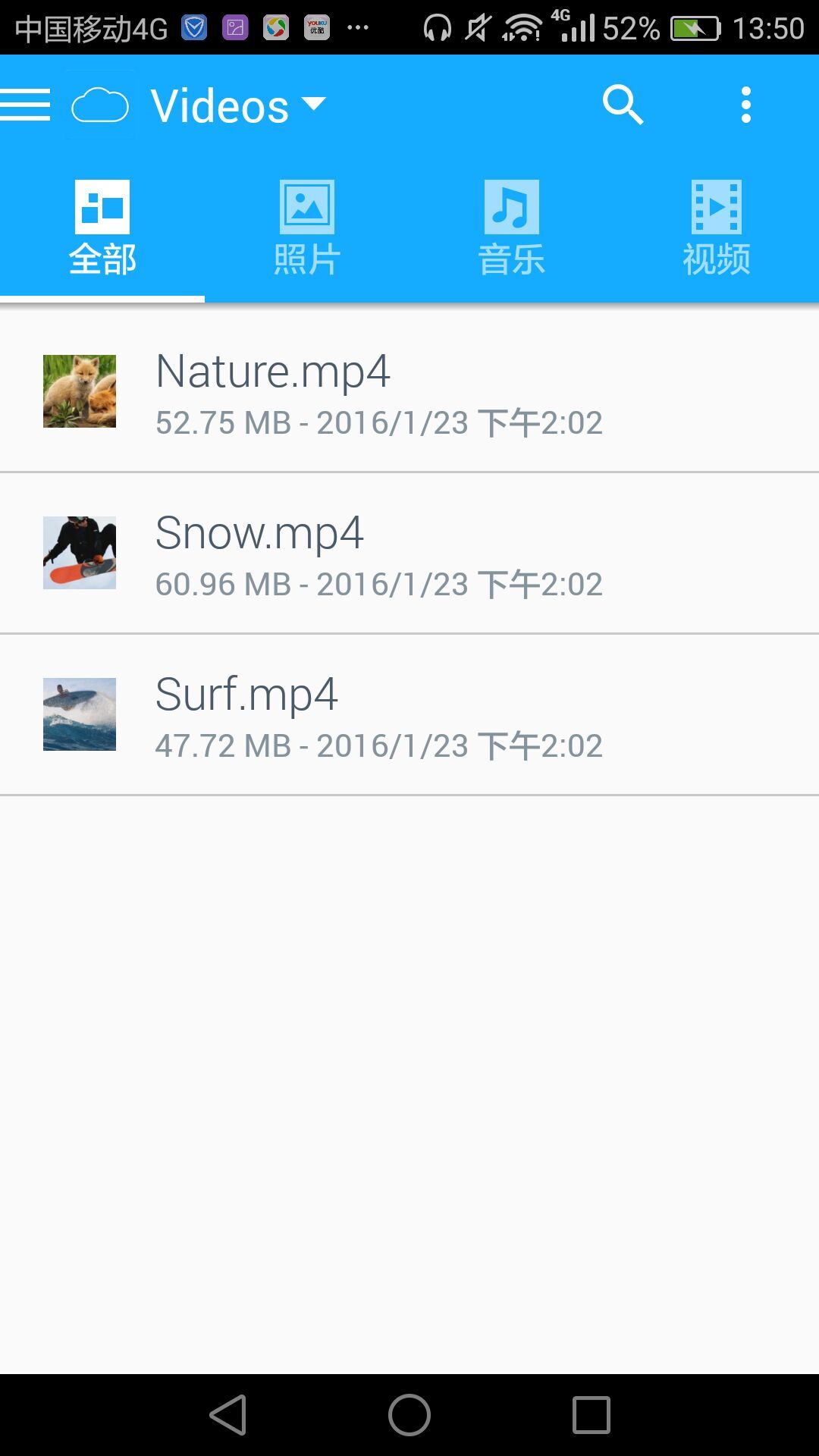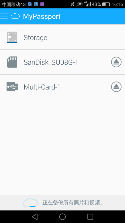 然后我們在APP中就可以看到My Passport Wireless Pro,讀卡器和SD卡里的內(nèi)容了(My Passport Wireless Pro可以當(dāng)做讀卡器使用)。照片,音樂,視頻都沒有問題。視頻也支持第三方播放軟件(安卓系統(tǒng))。